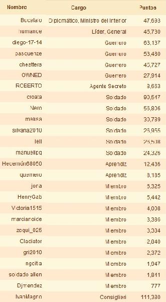 "Lista de Miembros y Rangos"