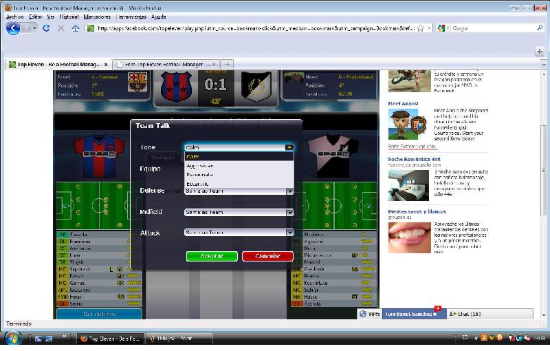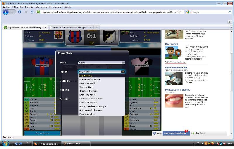 | en el descanso aparece una nueva pantalla para cambiar la tactica de juego esta en ingles y con las prisas del partido no me da tiempo de traducir lo q pone ¿alvaro me lo puedes decir por favor? |