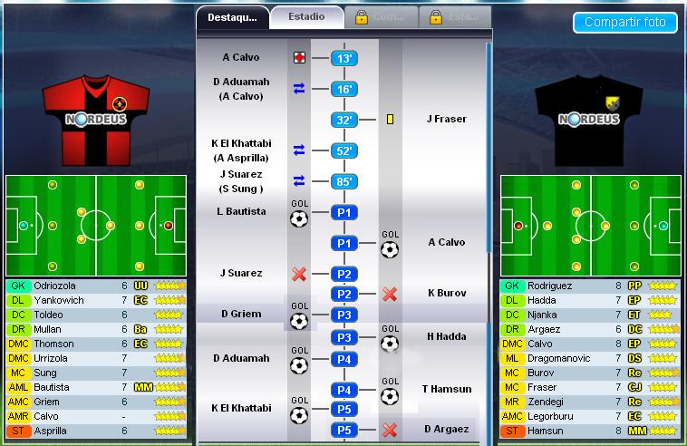 Hola a todos, una posibilidad de ver si hay gente con Nivel 9, es vender un jugador que tenga 6 estrellas y luego mira quien te lo compra desde, traspasos, mis ventas, esta claro que solo lo pueden comprar gente de mas categoría que tu, que lo verán con 5 estrellas, claro que no vas a vender un jugador de 6 estrellas pero espero que el administrador del foro nos ayude, un saludo a todos, os dejo un partido amistoso empatado, llegando a los penaltis.