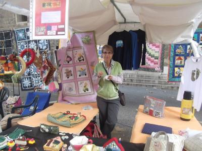 Es decir tener unas mesas (con o sin carpa, dependiendo del ayuntamiento) con sillas y por lo menos 4 profesoras de patchwork dando minicursillos con kits preparados a los transeuntes.