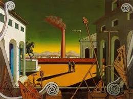 Ilust.:G. de Chirico.- Plaza con monumento al poeta
