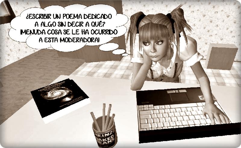 Por si alguien no se dio cuenta, está en la cabecera del hilo en cuestión la nueva propuesta quincenal, con toda suerte de explicaciones y un enlace a la novena a Santa Tallerina de la Poesía Impenitente, que no tiene otro fin que hacer que me lleguen los parroquianos al foro, para no languidecer de pena, penita, pena.
